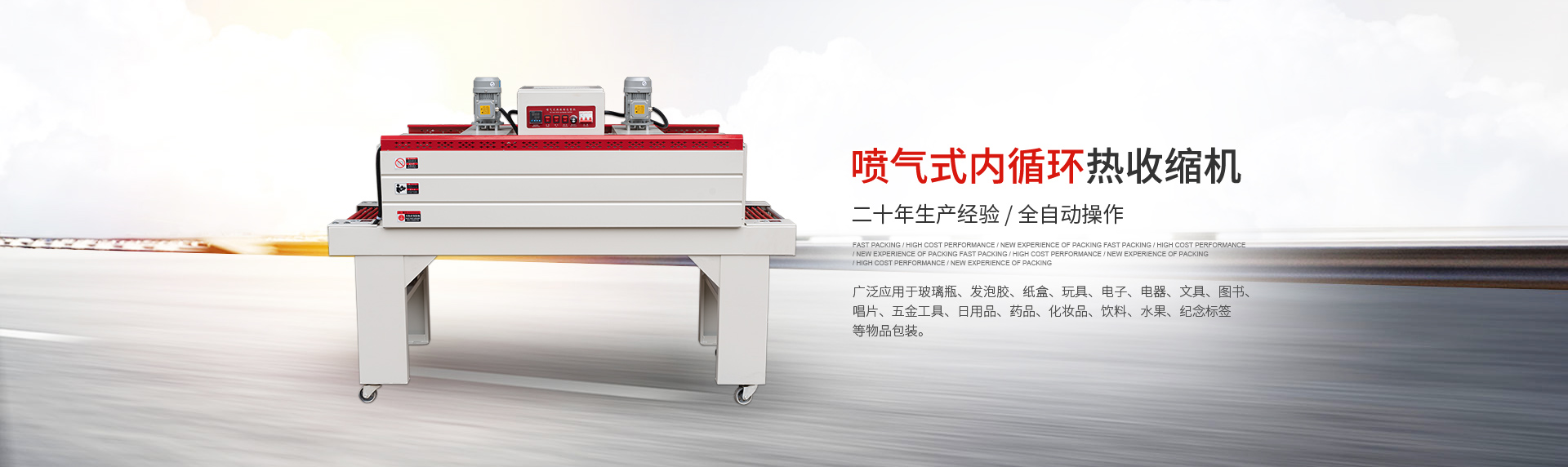 現主要產品有:全自動 L 型、邊封薄膜封切機、節能噴氣式內循環熱收縮機、貼體包裝機、吸塑包裝機、高周波塑膠熔接機、袖口式套膜機、枕式包裝機等多個系列的包裝機械